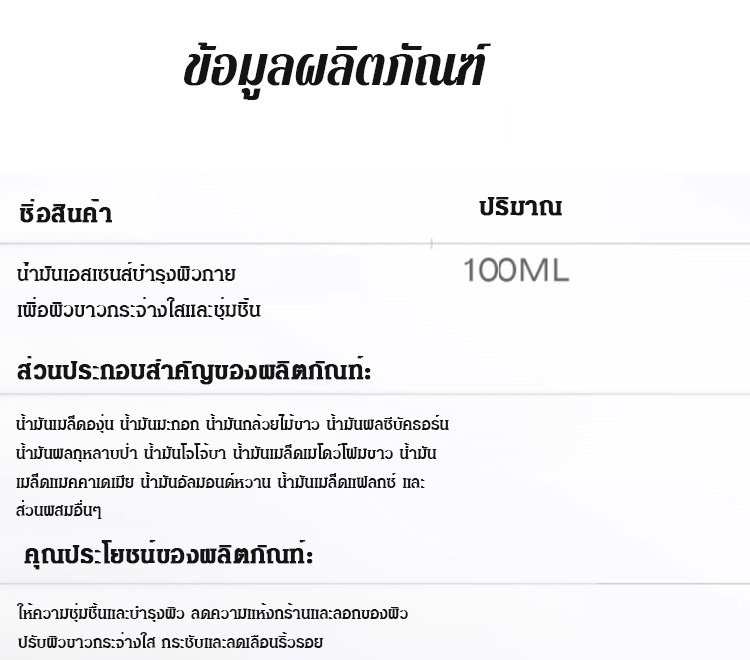 น้ำมันบำรุงผิวกายเพิ่มความชุ่มชื้นและไวท์เทนนิ่ง